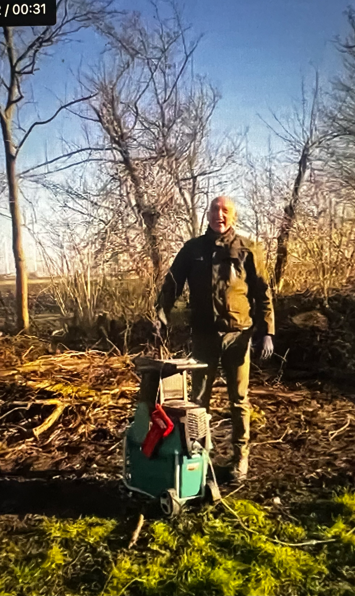 Dus, de grote bomen zijn om en de bramen en brandnetels zijn eruit getrokken. Nu liggen er grote hopen takken en snoeiafval op ons nieuwe stukkie. Die moeten door de shredder!