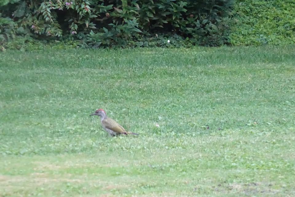Kijk dan! Er zit gewoon een groene specht in onze achtertuin!!!
